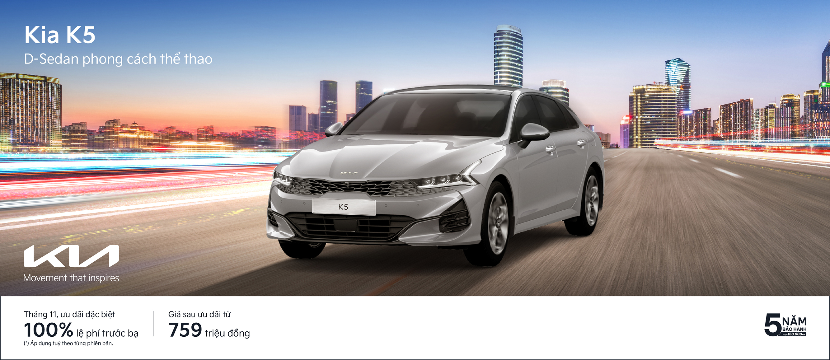 - KIA K5: Giảm Trực Tiếp Tiền Mặt + Tặng Full Phụ Kiện + BH Thân Vỏ - (tùy thời điểm)